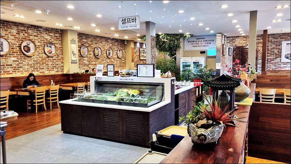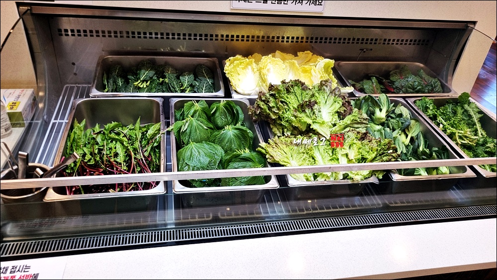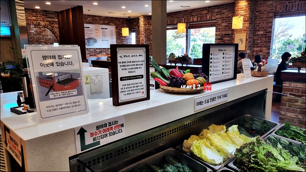 중앙에 셀프바가 있어서 신선한 쌈재료를 리필할 수 있습니다.
