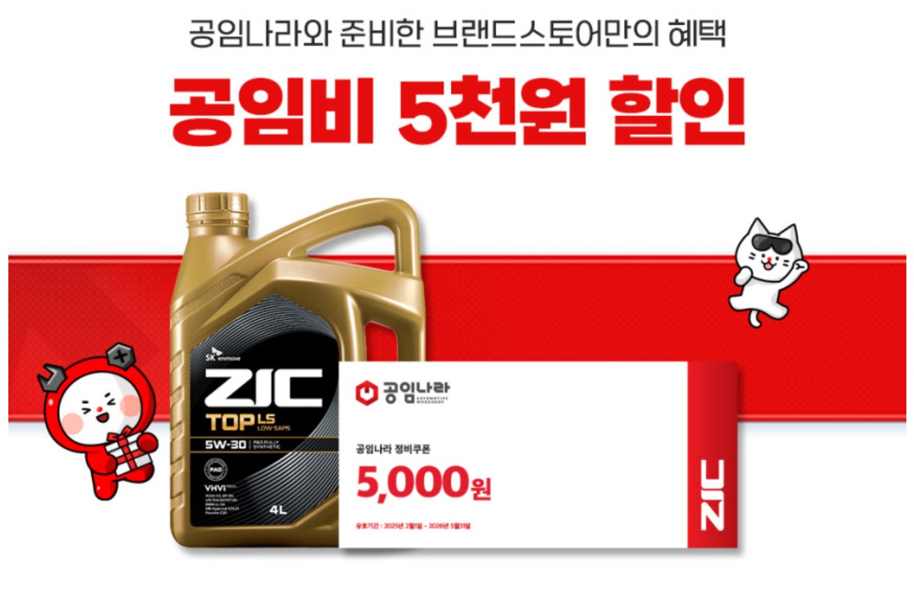 여기에 지크에서 제공한 공임나라 교환쿠폰 5천원 제공되어서 실교환 공임은 1만6천원에 엔진오일 교환완료했네요.
