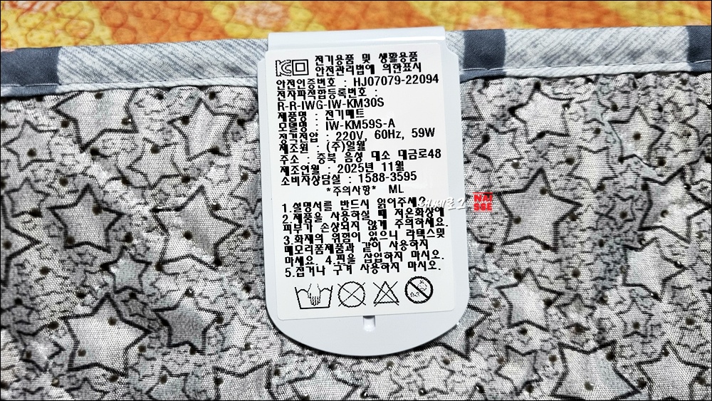 그동안 잘 사용했던 ㅅ풍 전기매트(요) 1인용이 270W였으니 59W라면 거의 1/5 수준이다.